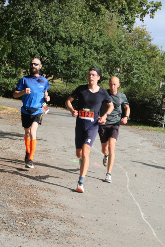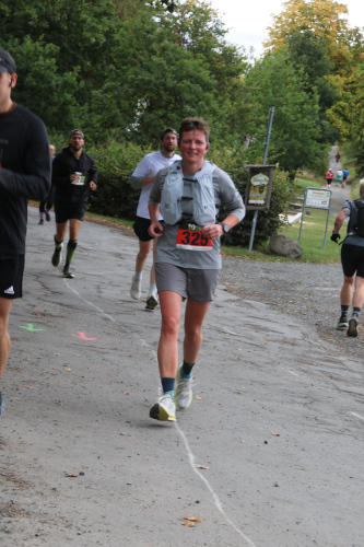 Wieder gutes Wetter, aber kleine Teilnehmerfelder - ca. 200 kamen an Ende in die Ergebnislisten. Hartmann stand wieder am Eingang in die "Bergwertung". Eine Streckenmarkierung gab es nicht, aber an den Abzweigungen standen Streckenposten. Hanna hatte sich vor Alex und Matthias ganz vorn platziert und konnte den Lauf in der Frauenklasse mit Vorsprung gewinnen. Alex und Matthias liefen gute Rennen und erreichten das Ziel unter den 49 Teilnehmern als 3. und 13.